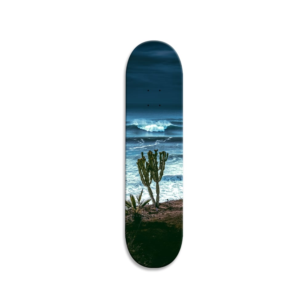Best Seats captures the quiet poetry of the coastline, a cactus rooted on the cliff gazing endlessly at the rolling waves. It’s a single skateboard deck transformed into fine art, offering a front row view of nature’s greatest show.